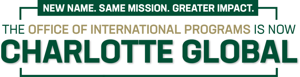 Established at UNC Charlotte in 1975, Charlotte Global strives to strengthen international education and global learning at the University as well as in the Charlotte community. On campus, it seeks to make international understanding, intercultural competency and global awareness a fundamental part of the curriculum and an integral part of campus life through innovative and accessible programming. Learn more about Charlotte Global or follow the provided links to OIP’s main areas of operation: Education Abroad, English Language Training Institute, Office of Intercultural and Educational Experiences, International Student and Scholar Office, and Office of Global Learning, and the World Affairs Council of Charlotte.
