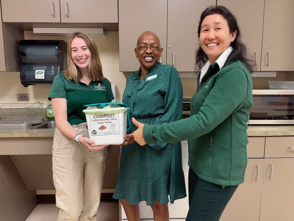 Yongling Gorke, assistant director for international education, and Sherry Washington, director of finance and personnel, are amongst the inaugural cohort of sustainability ambassadors at UNC Charlotte. Gorke and Washington joined efforts and completed a project for better waste management at the Office of the International Programs. Washington liaised with the Office of Sustainability and led the waste equipment assessment. The team assessed the waste and recycle bins of all of the OIP office spaces, including individual offices, conference rooms, a computer lab and the kitchen.