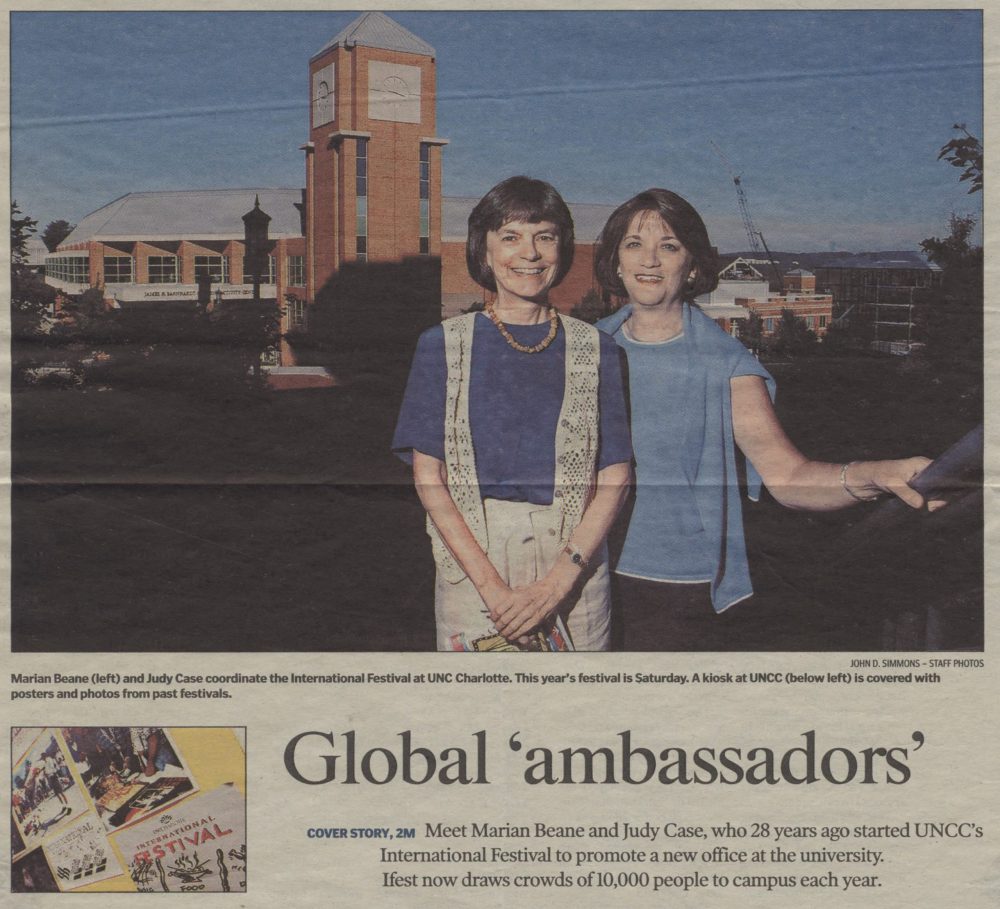 Marian Beane and Judy Case, both now retired, helped organize the inaugural festival in fall 1975. University leaders had established the Center for International Studies, later the Office of International Programs, now Charlotte Global, under the direction of former faculty member Earl Backman.