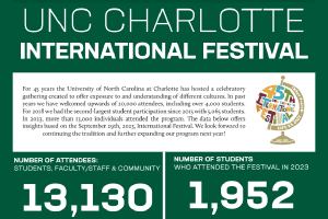 For 45 years the University of North Carolina at Charlotte has hosted a celebratory gathering created to offer exposure to and understanding of different cultures. In past years we have welcomed upwards of 20,000 attendees, including over 4,000 students. For 2018 we had the second-largest student participation since 2015 with 5,065 students. In 2023, more […]