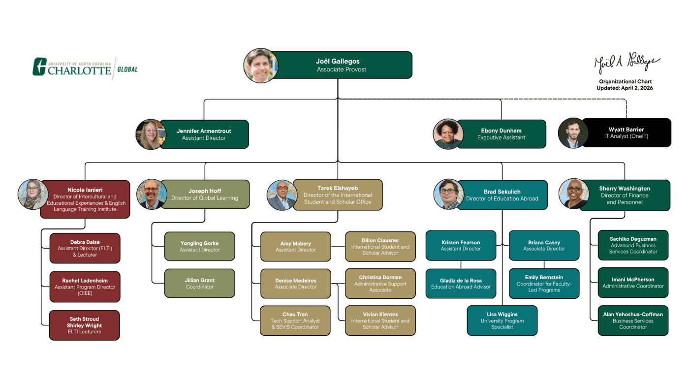 - The Charlotte Global Administration is the lead administrative operations unit and coordinates the campus-wide internationalization efforts and leadership of Charlotte Global’s integrated units.